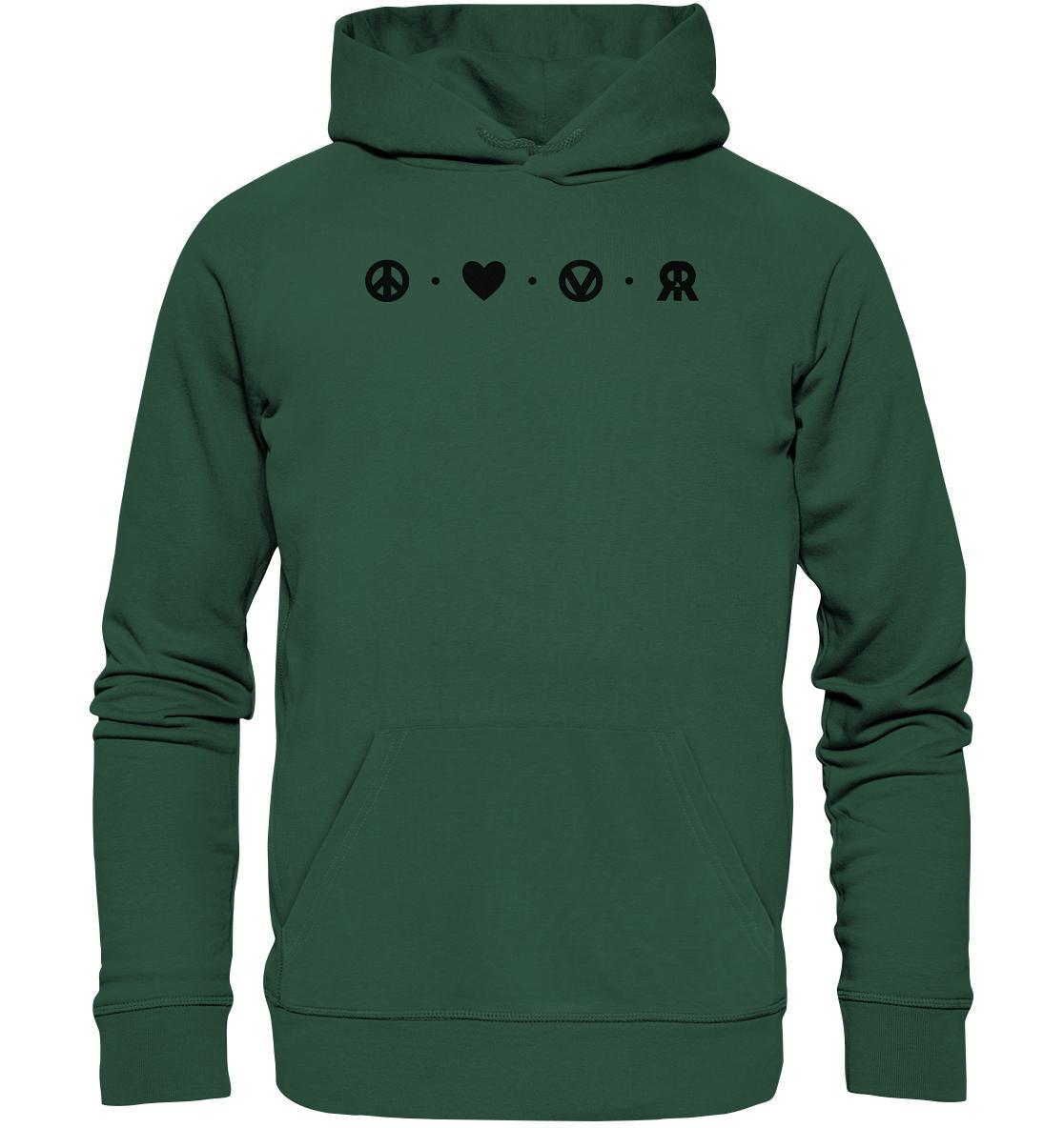 Vegan, Organic & Recycled Hoodie: Peace - Love - Vegan - Rebellious