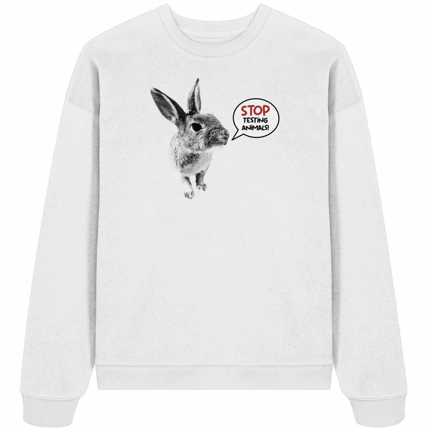 Vegan und Bio Oversized Sweatshirt: Cute Rabbit - Stop Testing Animals!