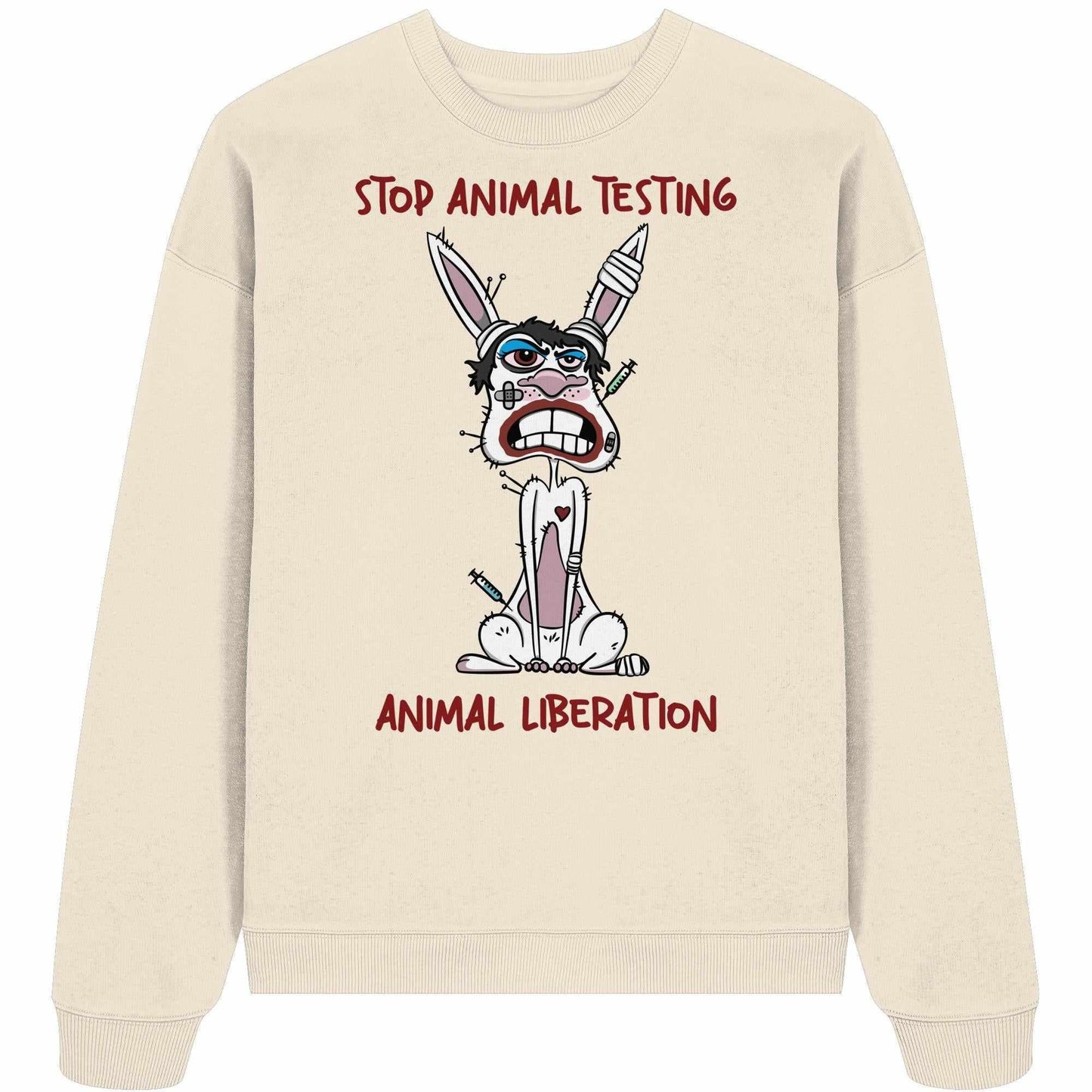 Vegan und Bio Oversized Sweatshirt: White rabbit - STOP ANIMAL TESTING!