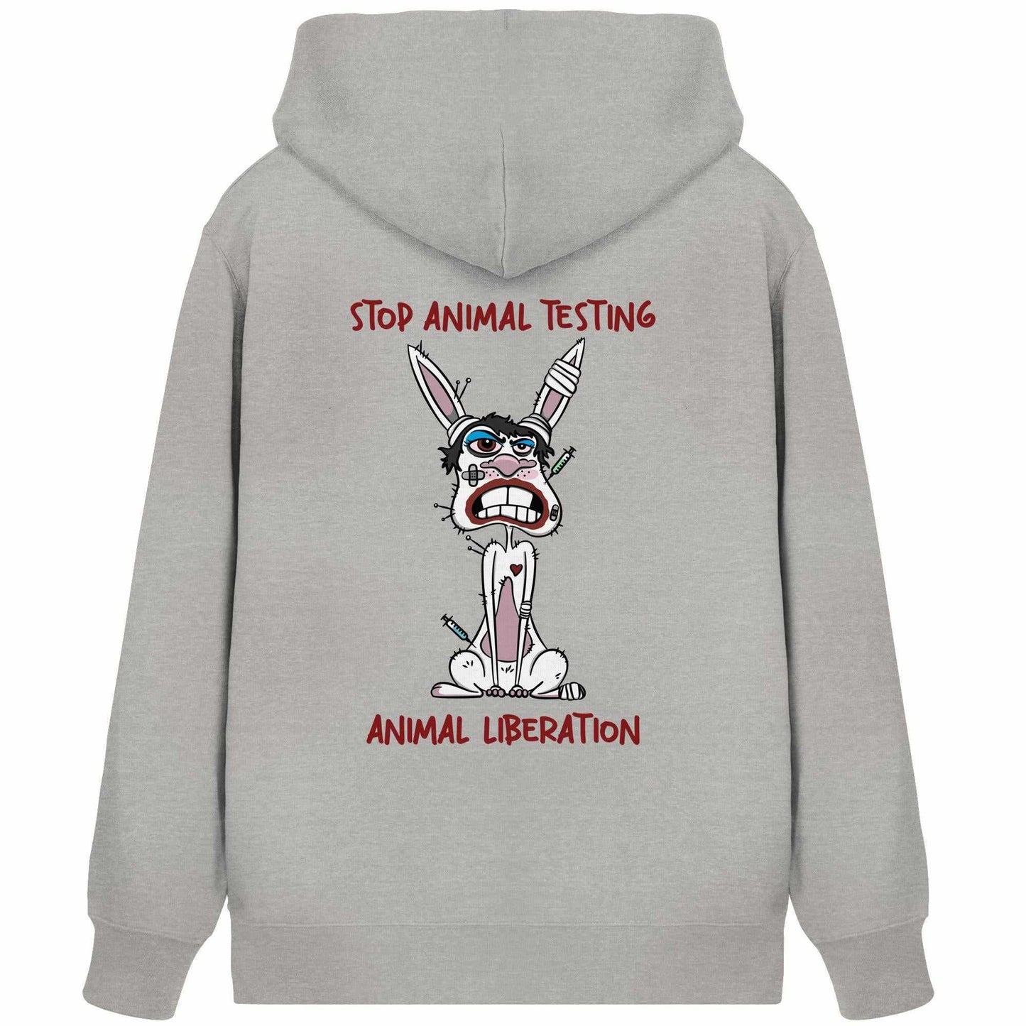 Vegan und Bio Zipper Hoodie: White rabbit - STOP ANIMAL TESTING!